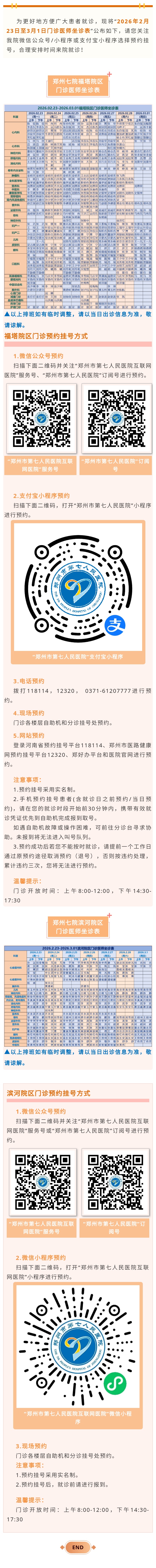 郑州七院2026年2月23日至3月1日门诊医师坐诊表