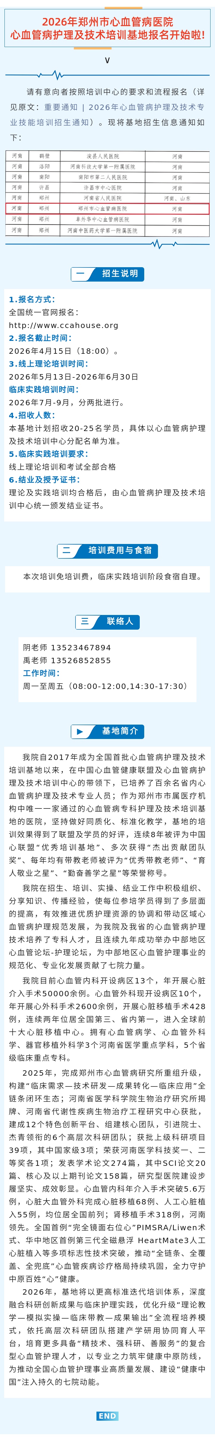 招生通知 | 心血管病护理及技术培训基地2026年招生开始了!
