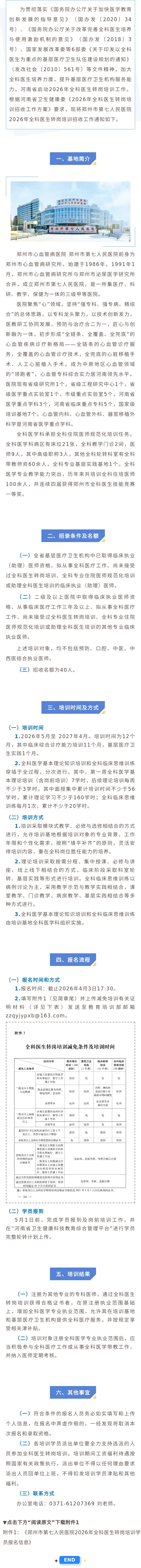 2026年郑州市第七人民医院全科医生转岗培训招生正式启动
