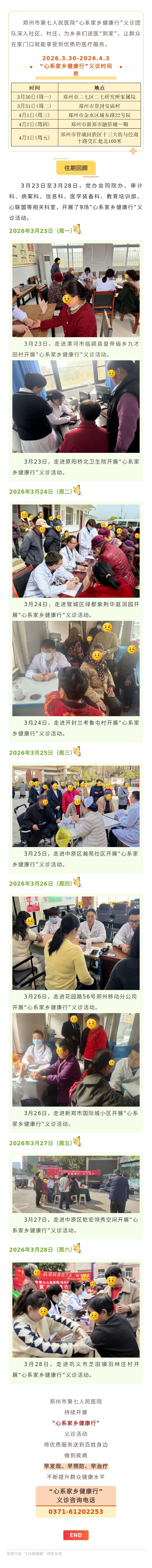 郑州二七区、金水区、管城回族区、登封、新郑居民请注意!郑州七院健康专车本周停靠时间表来了